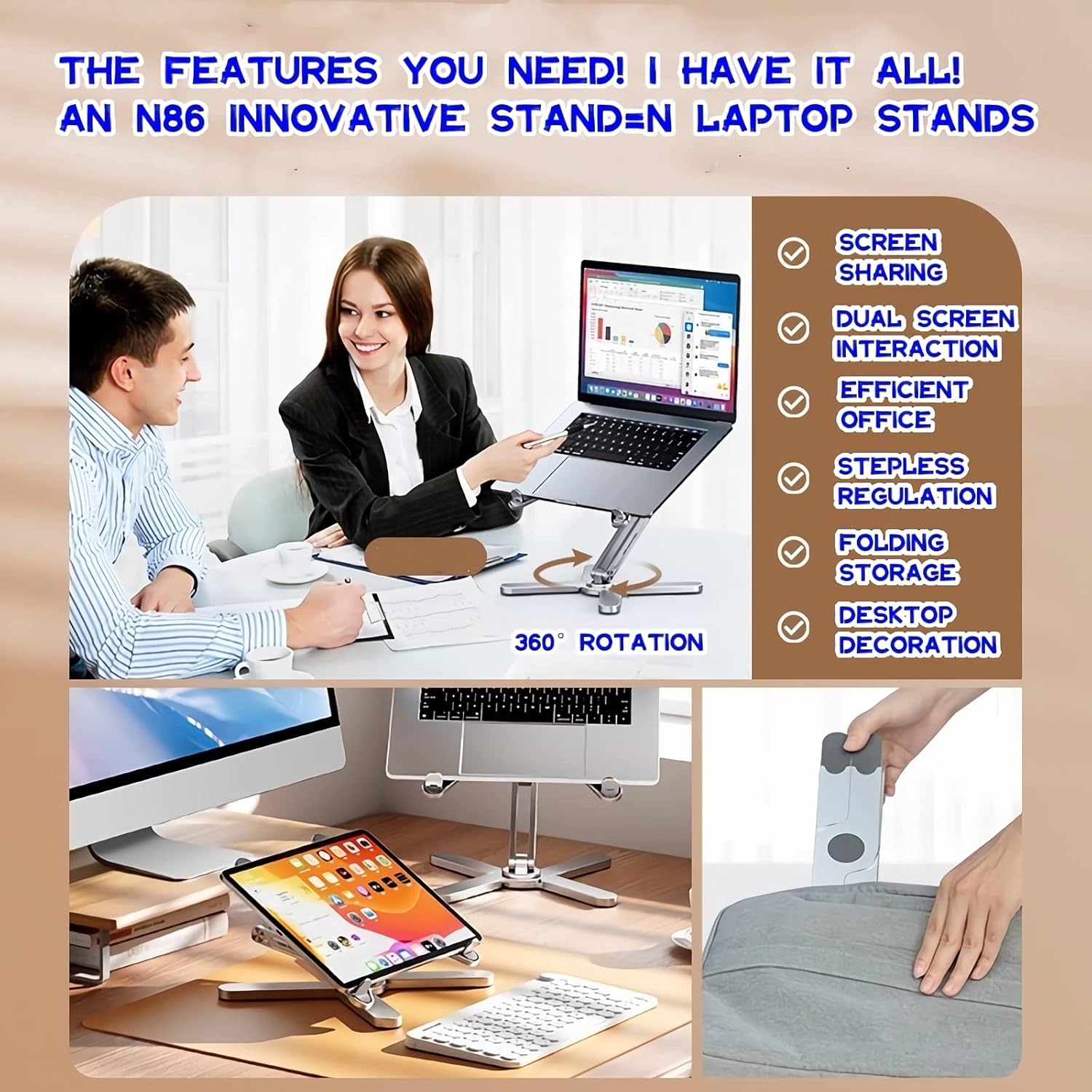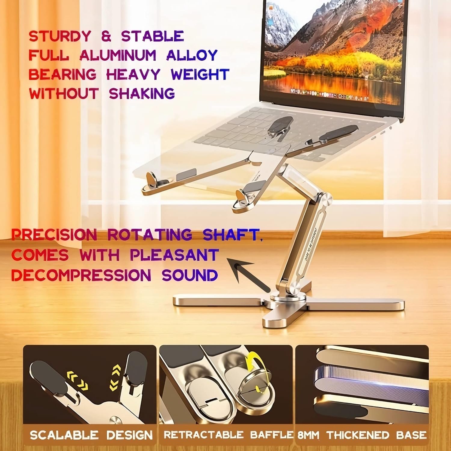 360° Rotatable & Adjustable: Designed with a 360° rotatable axis, this laptop stand allows you to easily share your screen with someone sitting across the room.You can adjust the angles and heights according to your needs. This perfect design will increase your work efficiency when collaborating with others.