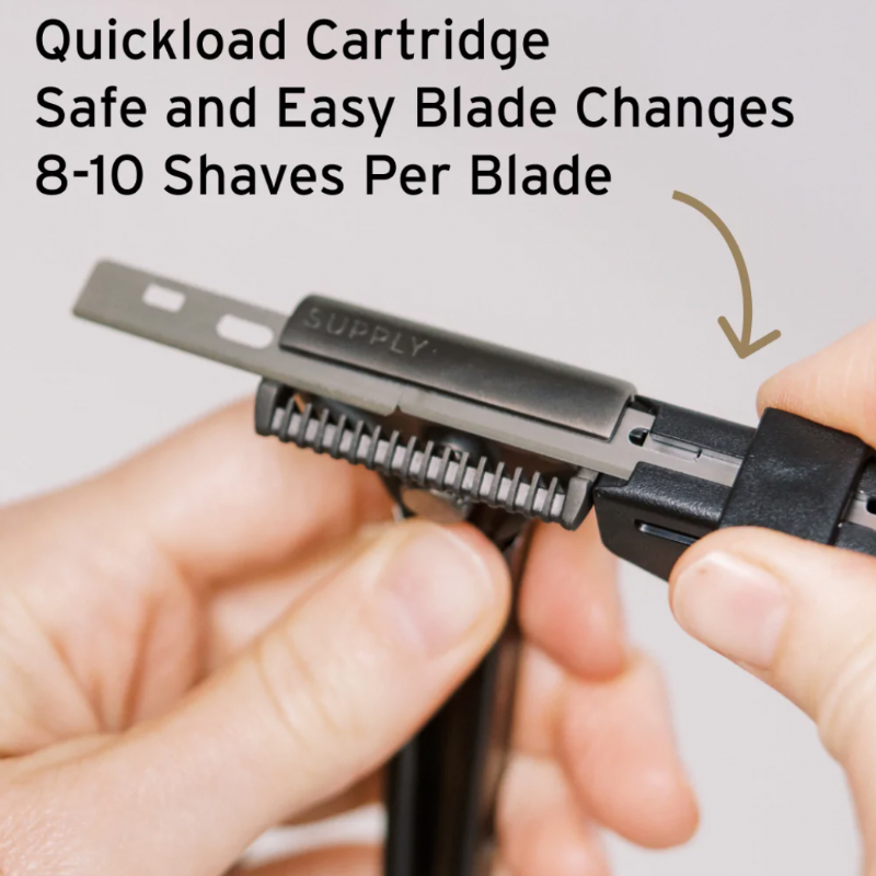 Reloading is simple with the injector cartridge system. Position the new blade against the two small blade stops for quick and precise blade placement. Compatible with Parker Injector Blades and other brands such as Schick, Personna, and Taconic Shave.