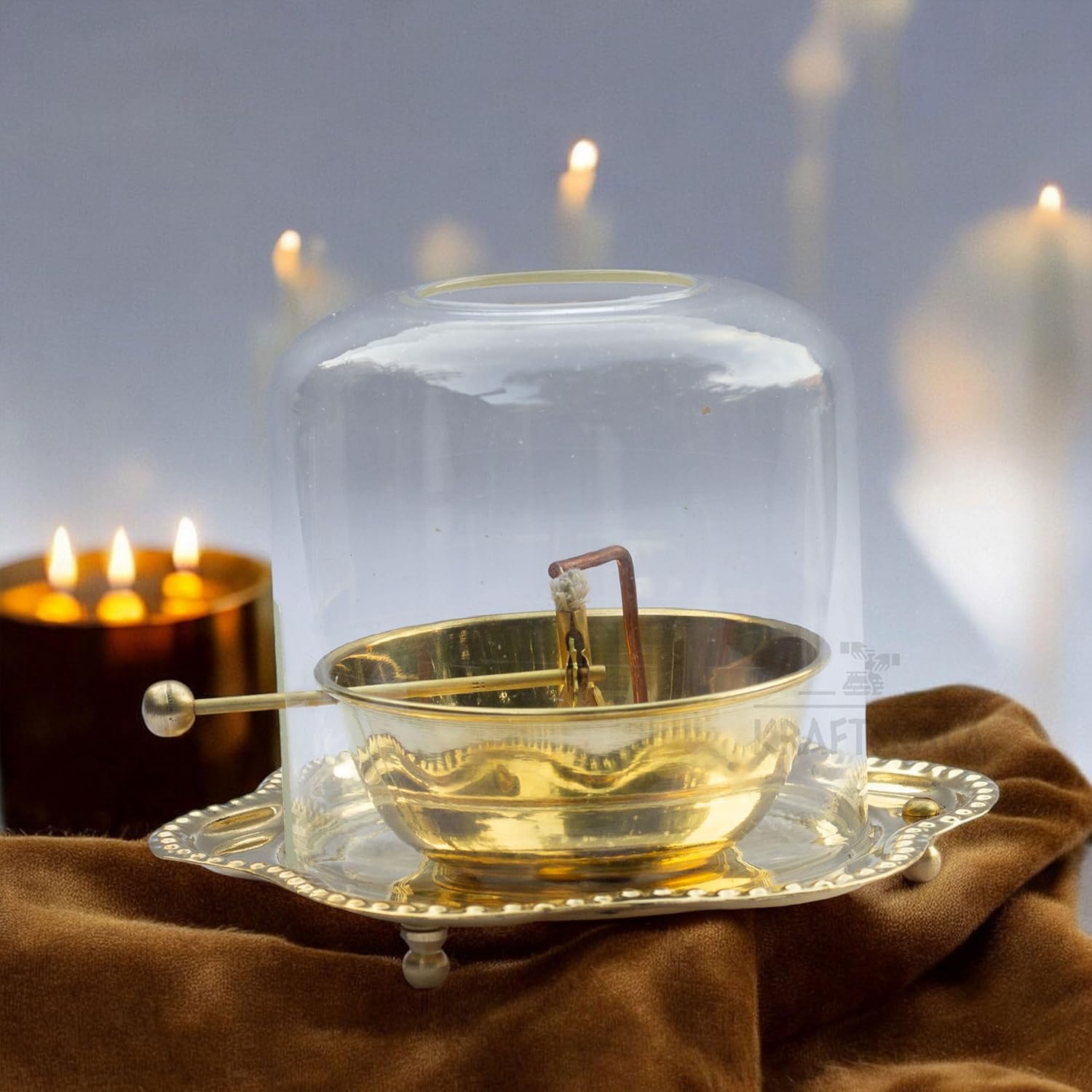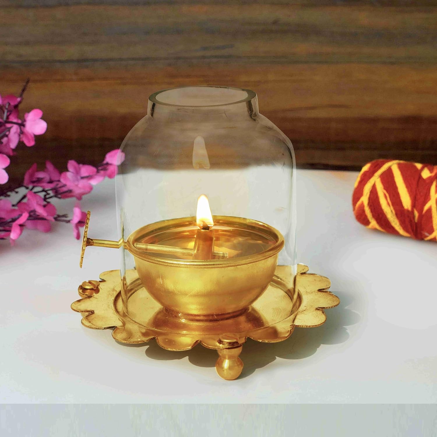 ✔️ 1 x Brass Akhand Diya with Glass Cover