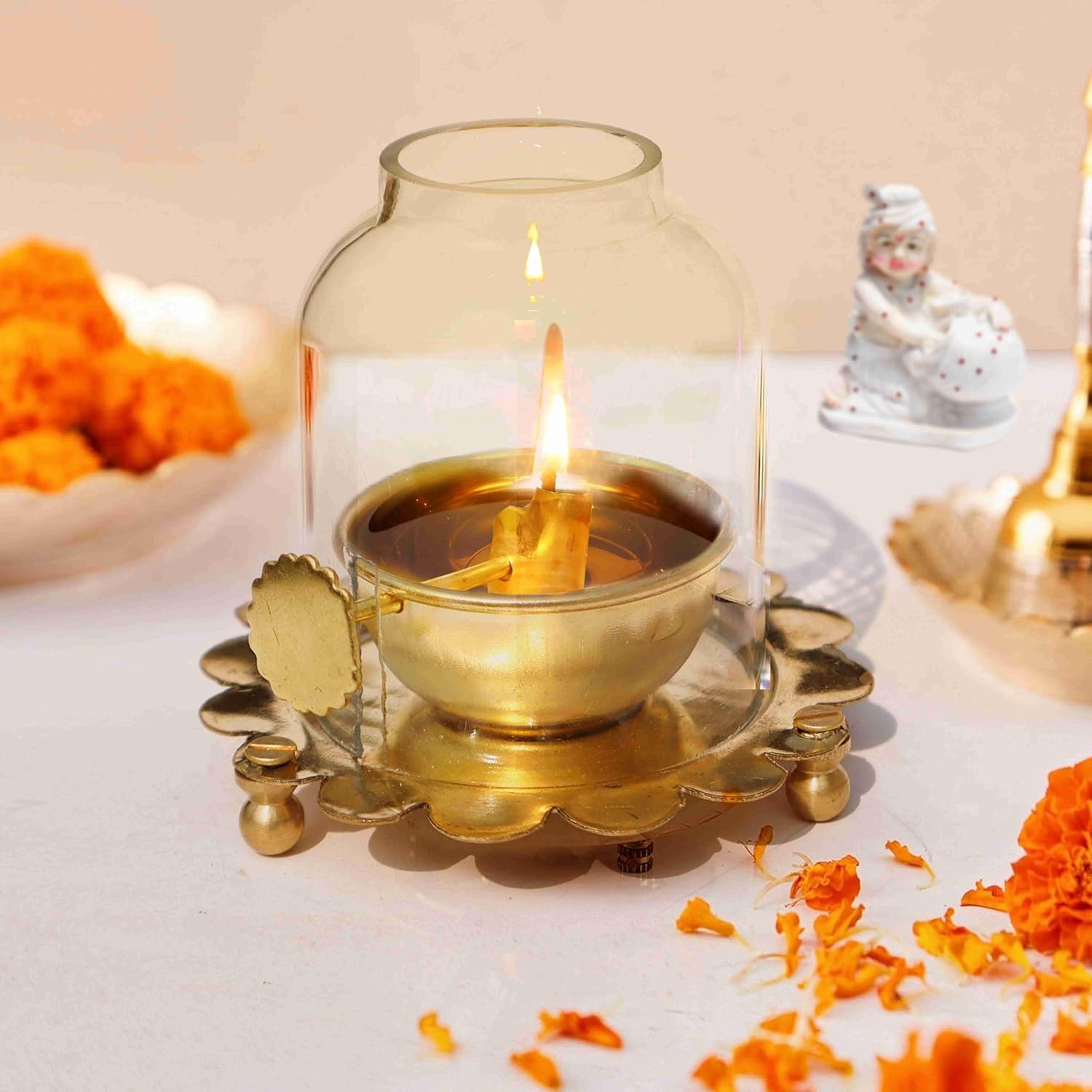 🌟 “Perfect for my puja room. The brass quality is excellent, and the glass cover makes a huge difference!” – Arjun, Mumbai